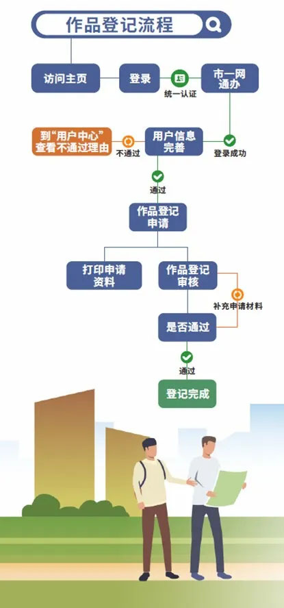 一件作品在登記申報(bào)受理后的30個(gè)工作日內(nèi)會完成登記。申請人完成在線申報(bào)后的5個(gè)工作日內(nèi),審核人員會給出受理意見,如果順利受理并通過,則整個(gè)過程不超過35個(gè)工作日,如果過程中需要申請人補(bǔ)正,則補(bǔ)正時(shí)間不計(jì)算在內(nèi)。